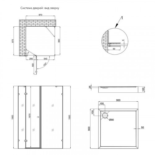 | Габарити упаковки (ШхГхВ), мм | 930х80х2090; 960х960х120 |