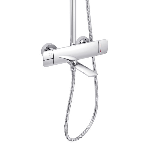 Система виготовлена з міцної латуні та ABS-пластику, що гарантує довговічність і стійкість до зношування. Глянцева поверхня у хромованому кольорі надає виробу елегантного і сучасного вигляду, який гармонійно впишеться в будь-який інтер'єр.