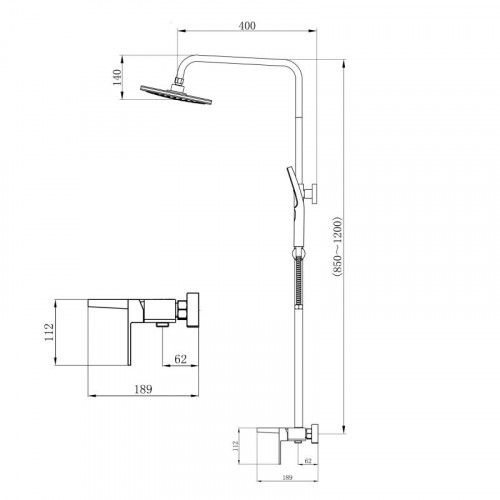 | Довжина кронштейна для верхнього душу, мм | 400 |