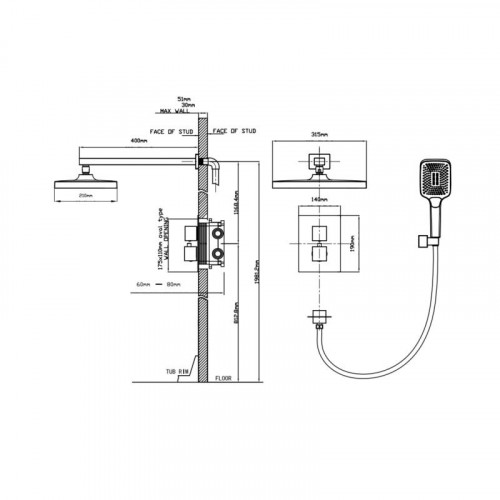 Форма Ручний душ: прямокутна. Верхній душ: квадратна