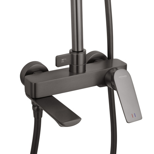 Поєднання сучасного дизайну та практичності робить цю душову систему ідеальним доповненням до будь-якого інтер'єру. Вона виконана у стильному кольорі "графіт", який надає ванній кімнаті нотки стриманої розкоші. Глянцева поверхня підкреслює сучасний стиль системи та надає їй блиску.
