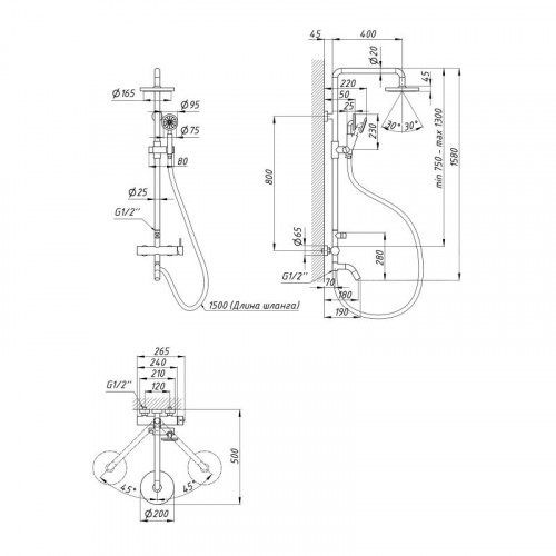 | Довжина кронштейна для верхнього душу, мм | 400 |