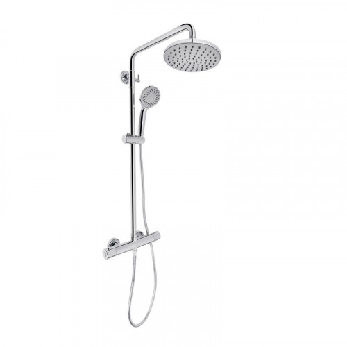 Душова система термостатична Qtap Sloup 57103ONC - естетичне та практичне рішення в одному виробі. Вона виготовлена з якісної латуні, нержавіючої сталі та міцного пластику, що не підпадають під вплив корозії. Система виконана з хромованою глянцевою поверхнею, обладнана змішувачем, а також двома видами душу - ручним та верхнім. Перемикання між споживачами здійснюється за допомогою дивертора на корпусі змішувача. Виріб стане яскравим акцентом в інтер'єрі будь-якої ванної кімнати.