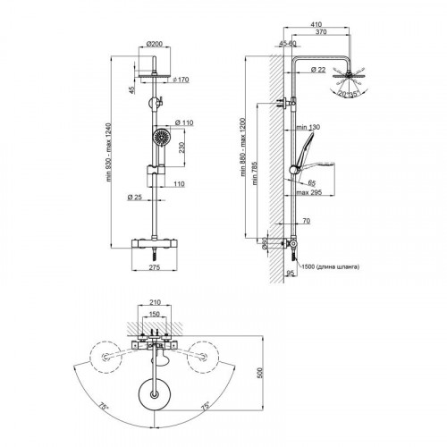 | Довжина кронштейна для верхнього душу, мм | 370 |
