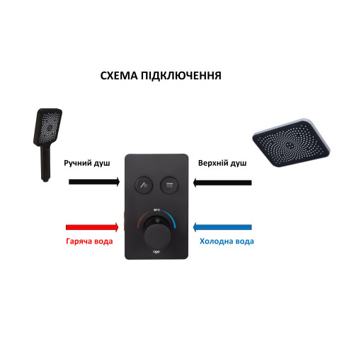 Змішувач для душу Qtap Votice термостатичний прихованого монтажу на два споживача QTVOT6442T105NKB Black Matt