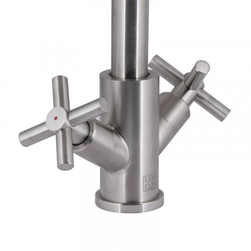 Змішувач для кухні Lidz Wind 013F виготовлений із нержавіючої сталі. Завдяки нікельованій брошованій поверхні він має оригінальний зовнішній вигляд. Виконаний у сучасному стриманому стилі, має двовентильне керування. Такий змішувач не тільки зручний та практичний, але й ідеально доповнить інтер'єр кухні.