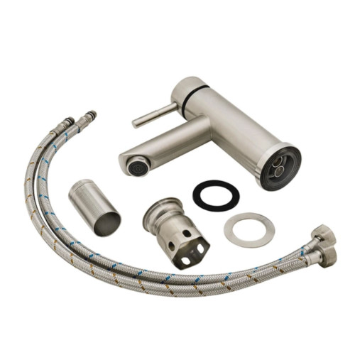 Змішувач для раковини Lidz Aria 001F LDARI001FNKS34937 виготовлений з нержавіючої сталі, яка не схильна до корозії, стійка до ударів і тріщин. Нікельована поверхня надає змішувачу не тільки довговічності, але і оригінального зовнішнього вигляду. Інтенсивність водного потоку та температура регулюються за допомогою переміщення важеля. Підключення води відбувається через гнучкі шланги з діаметром підключення 1/2", які входять до комплекту постачання.