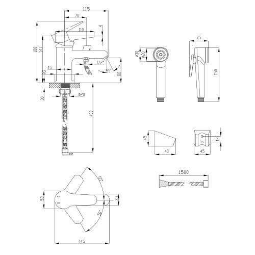 Змішувач для раковини Lidz (CRM) 14 34 001FB з лійкою для гігієнічного душу