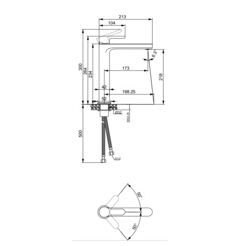 Змішувач для раковини Lidz Astra 001FH (арт. LDAST001FHCRM48090) – висока модель з плавними формами, призначена для встановлення з накладними умивальниками. Подовжений корпус і вилив забезпечують комфортне використання, а ергономічна ручка дозволяє точно регулювати температуру і напір води. Виготовлений з латуні та покритий зносостійким хромом, стійким до вологи та забруднень. У комплект входять шланги підключення та монтажний набір.