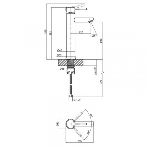 | Габаритні розміри виробу (ШхГхВ), мм | 53х155х292 |