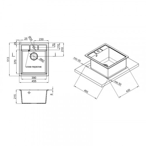 | Комплектація | Мийка, сифон, злив/перелив, корзинчастий вентиль, кріплення. |