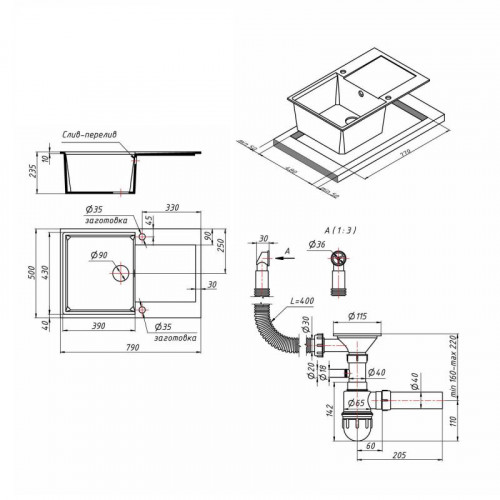 | Комплектація | Мийка, сифон, злив/перелив, корзинчастий вентиль, кріплення. |