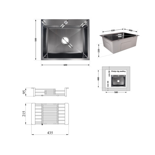 Комплект Lidz Handmade H6050B Мийка для кухні інтегрована BlackPVD у комплекті з дозатором + Lidz K01B Корзина для кухонної мийки