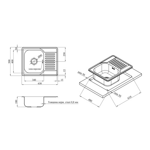Кухонна мийка Kroner KRP Dekor - 6350 (0.8 мм)