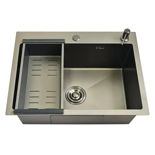 ID 6045-MGR мийка одинар.600x450x215мм,(3.0/0.8мм), сифон, дозатор, кошик PVD GRAPHITE matte {1/1}