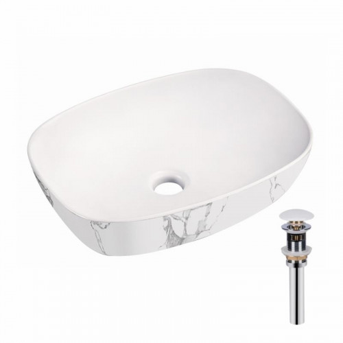 Раковина накладна Qtap Robin 500х380х140 мм, Marble, прямокутна, з донним клапаном QT04116302MR