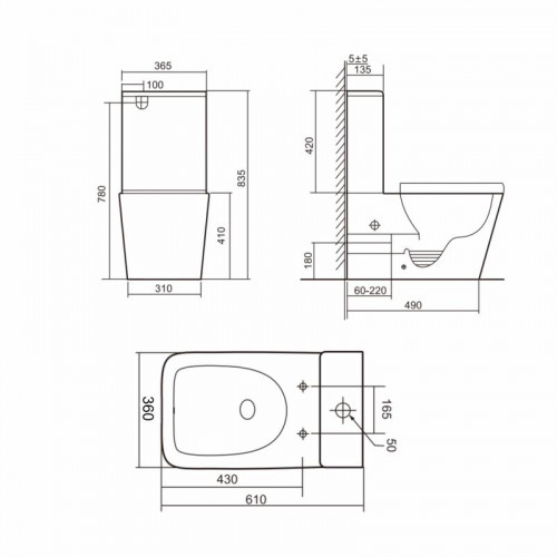 | Додаткові характеристики | Мінімальний об'єм води для омивання чаші – 3 л. |