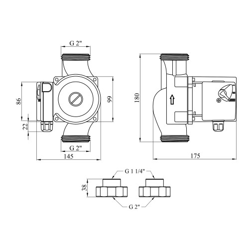 Потужність (P): 135-200-220 Вт — потужний насос, розрахований на роботу в системах із підвищеним навантаженням.