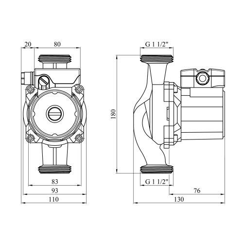 Максимальна витрата (Qmax): 3 куб.м/год — забезпечує стабільну циркуляцію навіть за інтенсивної експлуатації.