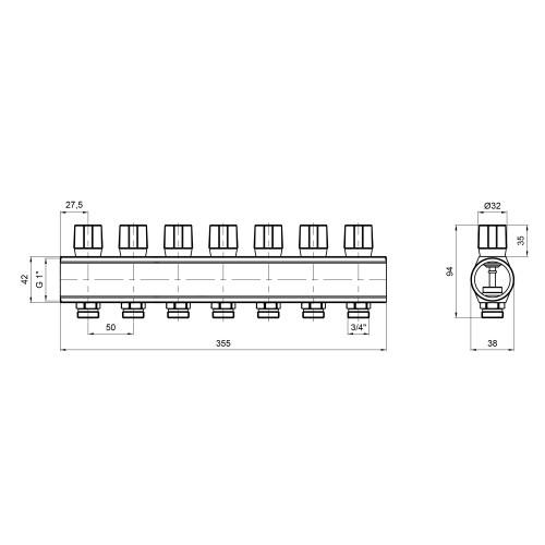 Колектор Icma з регулювальними вентилями 1" 7 виходів №1105 (Red)