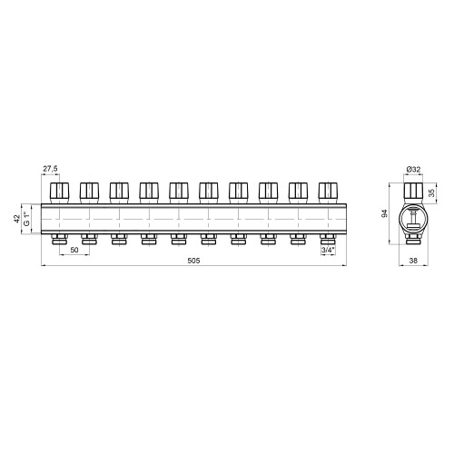 Колектор Icma з регулювальними вентилями 1" 10 виходів №1105 (Red)
