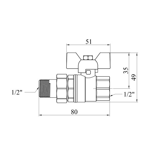 Кран-американка кульовий прямий Karro "Standart+" 1/2" ВЗ PN40 метелик, нікельований