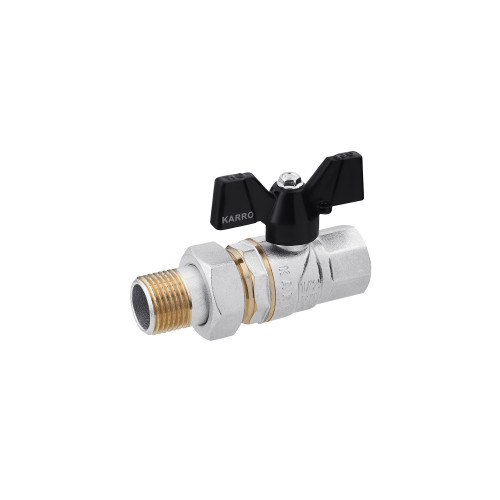 Кран-американка кульовий прямий Karro "Premium" 1/2" ВЗ PN40 метелик, нікельований