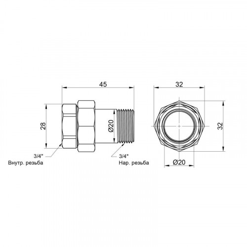 | Різьба | Внутрішня/Зовнішня |