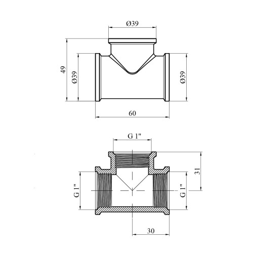 Призначення: з'єднання трьох елементів трубопроводу із зовнішнім різьбленням 1 дюйм і створення розгалуження.