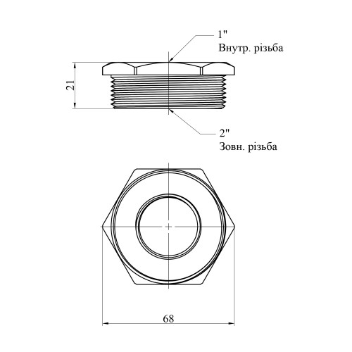 Призначення: з'єднання елемента з внутрішньою різьбою 2 дюйми з елементом, що має зовнішню різьбу 1 дюйм.