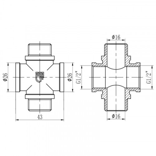 Хрестовина Thermo Alliance Forte підключення 1/2" ВЗ нікельована, рівнопрохідна. Має внутрішню та зовнішню циліндричну різьбу, сумісна з внутрішньою та зовнішньою конічною трубною різьбою.