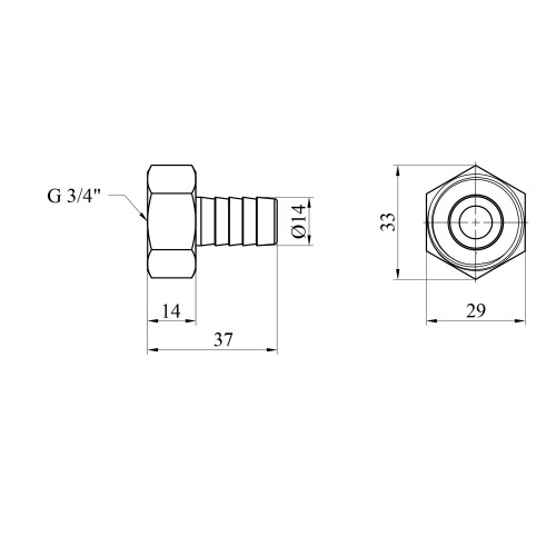 Штуцер Karro 3/4" РВ, D=14 мм нікельований KR-820 - це фітинг, призначений для під'єднання гнучких шлангів або труб до елементів трубопровідної арматури або устаткування, що мають зовнішнє різьблення 3/4 дюйма. Завдяки нікельованому покриттю він відмінно протистоїть корозії та зберігає привабливий зовнішній вигляд. Штуцер має внутрішнє різьблення 3/4 дюйма (РВ — різьблення внутрішнє) з одного боку і ялинковий наконечник (під шланг) діаметром 14 мм з іншого.