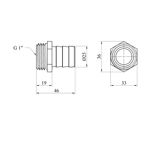 Штуцер Karro 1" РЗ, D=25 мм нікельований KR-821 є надійним і зручним рішенням для під'єднання гнучких шлангів до різьбових з'єднань 1 дюйм, забезпечуючи міцність і стійкість до корозії.