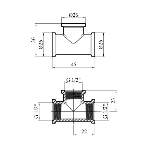 Призначення: з'єднання трьох елементів трубопроводу із зовнішнім різьбленням 1/2 дюйма і створення розгалуження.