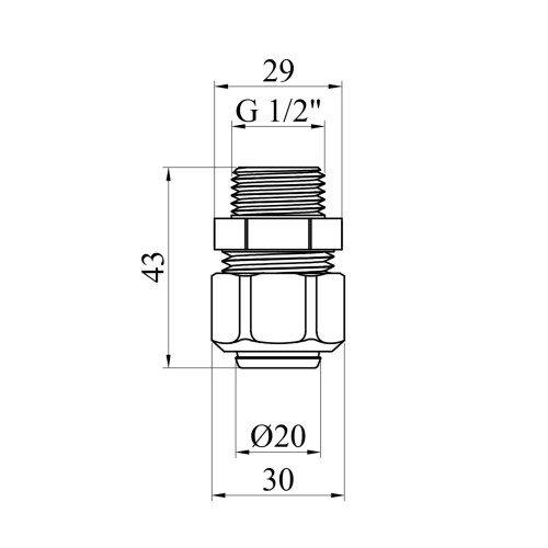 Тип з'єднання: компресійне (обтискне) для труби та різьбове для фітинга.
