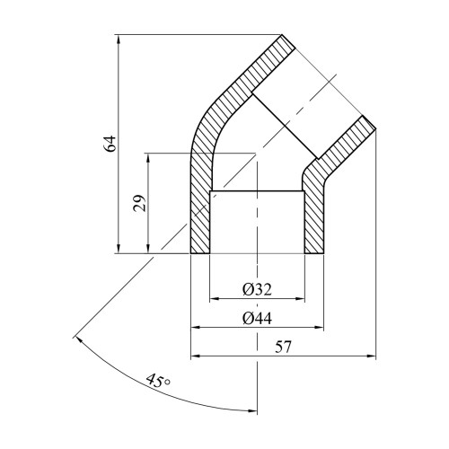 Плавна зміна напрямку: кут 45° сприяє мінімізації гідравлічних втрат і забезпечує рівномірний розподіл потоку рідини.