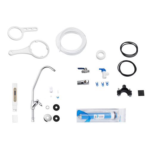 Система оснащена високоякісною зворотноосмотичною мембраною від провідного іноземного виробника. Вона ефективно видаляє сторонні домішки, важкі метали, органічні речовини, тверді частинки та шкідливі забруднення, залишаючи тільки молекули води та розчинений кисень.
