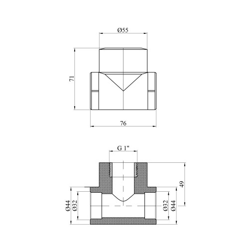 Розміри: Один кінець - 32 мм, інший - 1" (різьбове з'єднання РВ).