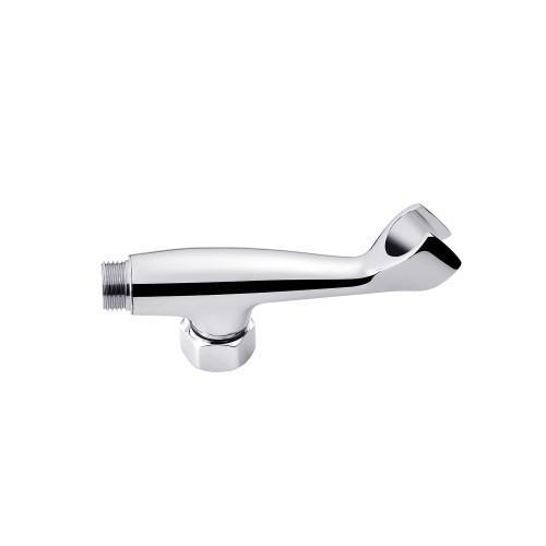 Кронштейн для ручного душу Kroner KRM - C919 хромований, завдяки чому виріб стійкий до подряпин, дії агресивних миючих засобів, утворення корозії та зносу. Він кріпиться до змішувача, складається з довгастого корпусу, підведення із зовнішнім різьбленням і універсальним діаметром 1/2" для підключення шланга, а також тримача для лійки.