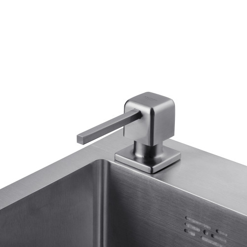 Вбудований дозатор Kroner KRP Spender - ECG054 стане універсальною родзинкою в інтер'єрі сучасної кухні або ванної кімнати. Диспенсер - це незамінний аксесуар, який виконує кілька функцій. По-перше, економія витрати миючого засобу або рідкого мила. По-друге, позбавляє візуального шуму. При монтажі аксесуар, що вбудовується, фіксують в отворі стільниці або мийки таким чином, щоб пластикова ємність була прихована всередині, що надає простору акуратний вигляд. Завдяки прозорим стінкам зручно контролювати витрати миючого засобу. Він складається з пластикової ємності 480 мл і помпи - з високоякісної нержавіючої сталі, яка її герметично закриває. Оснащений системою подачі миючого засобу з додатковим каналом, що виключає контакт рідини з латунними деталями. Аксесуар має підвищену міцність, стійкий до агресивного впливу зовнішнього середовища та розрахований на тривалу експлуатацію. Максимальна товщина стільниці 60 мм. Діаметр отвору для встановлення 25 мм.