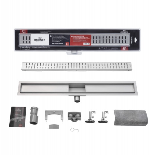Завдяки прямокутній формі та розміру решітки 695х62 мм, трап ідеально підходить для сучасних душових кабін. Надійність виробу підтверджується гарантією 60 місяців, що робить Kroner KRP Eifel W70 Welle практичним і довготривалим вибором для вашої ванної кімнати.