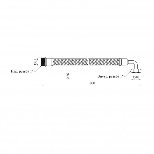 Шланг виготовлений з нержавіючої сталі та має латунну гайку, що забезпечує його довговічність і стійкість до механічних навантажень. Кутовий шланг має внутрішню і зовнішню різьбу, а також діаметр підключення 1"х1". Довжиною 80 см, цей шланг ідеально підходить для різних систем завдяки своїм характеристикам.