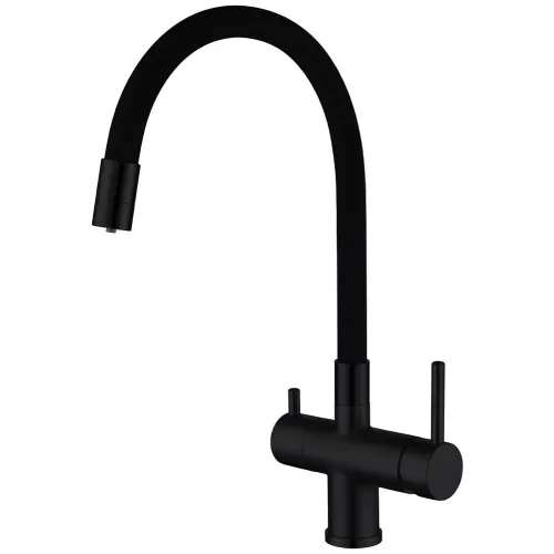 Змішувач для кухні на дві води GAPPO G4398-36 з гнучким виливом, чорний