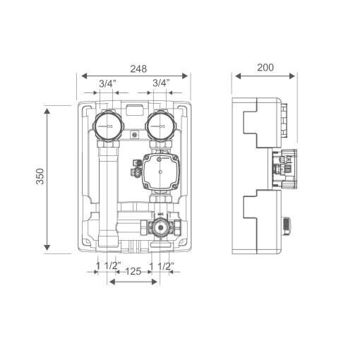Icma Насосна група Icma з ручним регулюванням та термостатичним змішувачем праве підключення 1 1/2"x3/4" №R004