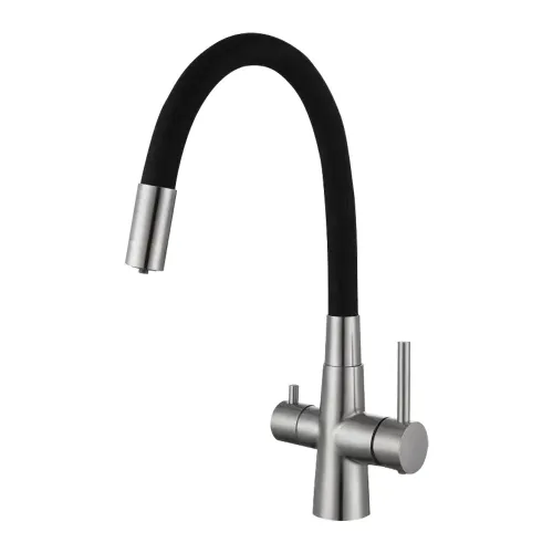 INX4C-08B кухня пiд осмос одноваж. гнучкий силiкон.вилив нерж сталь гайка ?35 (black/сатин) {10/1}