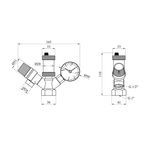 Конструкція: група безпеки із запобіжним клапаном і, за необхідності, вбудованим манометром.
