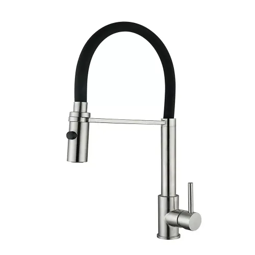 Матеріал: харчова нержавіюча сталь марки SUS304. Тип корпуса: одноважільний. Вилив: високий, поворотний, гнучкий, 2-х режимний. Висота змішувача: 54 см. Комплектація: змішувач, кріплення, шланги для підводу води 50 см.