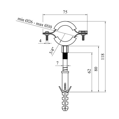 Хомут зі шпилькою в зборі Karro 3/4" 26-30 мм металевий
