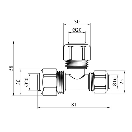 Підключення: 20×20×16 мм (дві труби 20 мм і одна 16 мм).