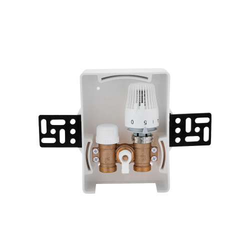 Unibox K працює як пропорційний механічний регулятор температури зворотного потоку. Термостатична рідина в датчику реагує на підвищення температури, розширюючись і дроселюючи клапан, тим самим знижуючи подачу теплоносія в контур теплої підлоги. У разі зниження температури клапан автоматично відкривається. Електроживлення не потрібне.